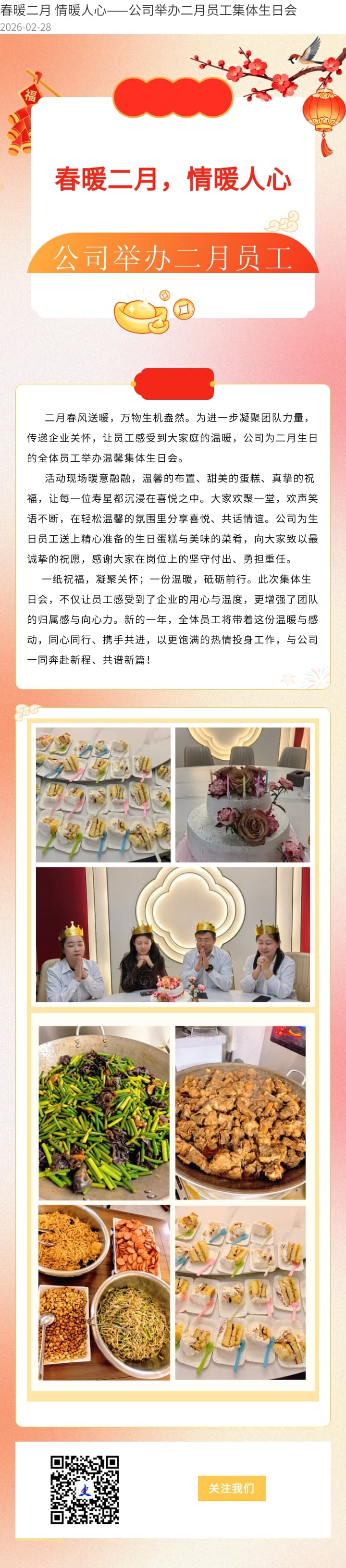 春暖二月 情暖人心——公司举办二月员工集体生日会